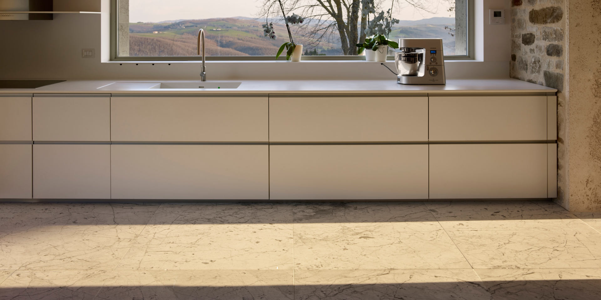 Terazzo oz kamen je sad dolgoletne tradicije kamnoseških mojstrov, kjer obrt je postala skoraj umetnost. Ročna in industrijska izdelava sobivata in soustvarjata popolno sinergijo: tradicija, znanje, predanost, skrbnost in najsodobnejša tehnologija zagotovijo edinstveno podobo tej tipologiji proizvoda.